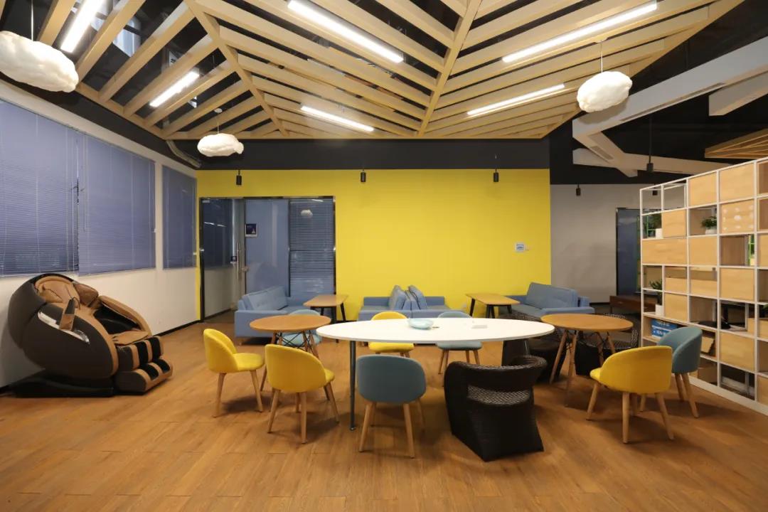 如果整個辦公樓都是明亮嚴謹的燈光待久了難免給人不近人情、冷漠、刻板的感覺,減少員工的歸屬感。這時候針對員工活動區域,如休閑區、活動區等場所,可以考慮3500K左右的暖光照明,同時配合一些獨特的造型燈打造溫馨、活躍的氛圍。