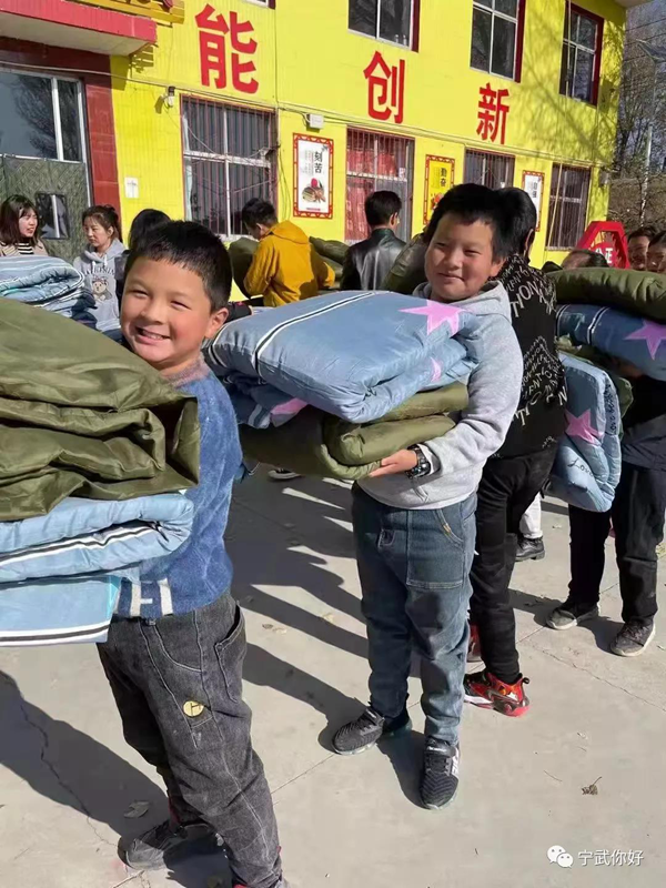 中國對外承包工程商會調研后,了解到鄉村學校條件相對較差,留守兒童多,部分學生過冬棉被比較陳舊、單薄,動員會員單位企業給予幫助。中信建設有限責任公司第一時間為寧武的孩子們趕制了500套優質被褥,包括棉被和褥子共計1000件,并承擔遠途運輸費用。僅用了半個月時間,在立冬到來之前,溫暖的被褥就鋪在了13所鄉村學校學生們的床上、蓋到了學生們的身上。