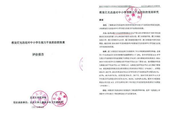 最經典的應該是我們第一所整校改造案例廈門五緣實驗學校。改造五年來,經權威機構檢測,各項指標依然優于國家標準。更可喜的是,由教室照明國標主起草單位北京大學兒童青少年衛生研究所(國標GB7793-2010《中小學校教室采光和照明衛生標準》、國標GB40070-2021《兒童青少年學習用品近視防控衛生要求》主起草單位)出具的報告顯示,立達信健康光環境的改造在一定程度上可預防中小學生視力下降及降低視力不良的新發率。統計數據顯示,不同年齡段近視率下降了5.9-33.3%不等。