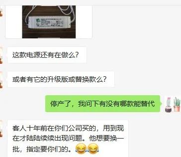 聊天記錄為業(yè)務(wù)同事反饋,聊天中提到的為萊福德LF-G418B系列產(chǎn)品,了解萊福德的客戶朋友應(yīng)該從命名就能看出,該產(chǎn)品是萊福德很早以前的LED日光燈、平板燈外置電源,該產(chǎn)品質(zhì)保年限為3年。