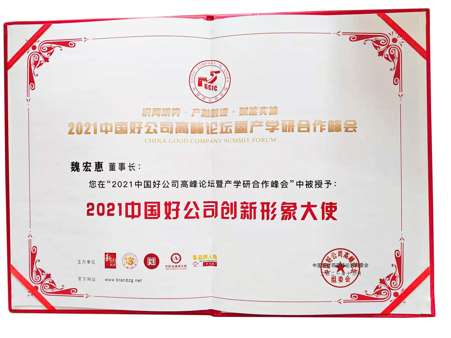 金三惠科技董事長魏宏惠受邀出席2021中國好公司高峰論壇暨產學研合作峰會并授予2021好公司創新形象大使稱號