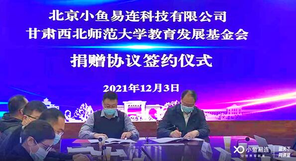 近日,北京小魚易連科技有限公司與西北師范大學(xué)教育發(fā)展基金會,在西北師范大學(xué)順利舉行捐贈協(xié)議簽約儀式。小魚易連向西北師范大學(xué)教育發(fā)展基金會捐贈了價(jià)值619萬元的平臺軟件和設(shè)備,以公益筑夢教育,用科技賦能未來,攜手西北師范大學(xué),共促教育高質(zhì)量均衡發(fā)展!