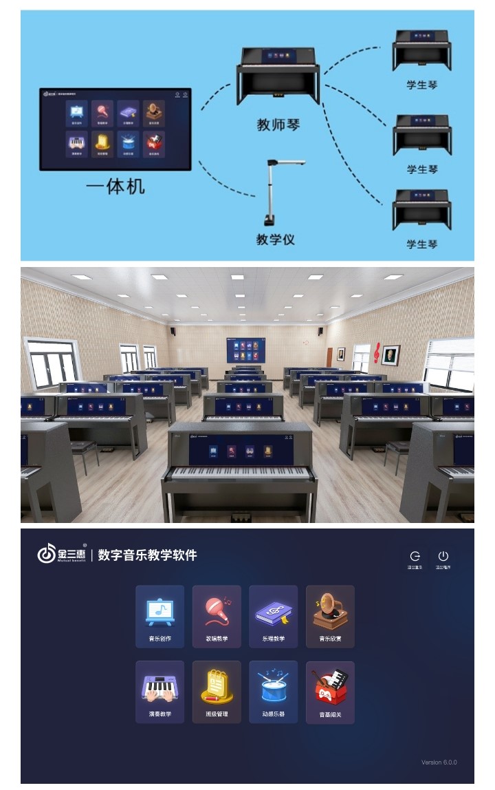 為更好地響應國家教育部關于教育信息化發展工作,北京金三惠科技有限公司作為國內領先的音樂教育的自主研發、生產、銷售為一體的服務商。金三惠有針對性的提出符合當地學校實際需求的新常態音樂教室整體解決方案,以解決此區域師資薄弱學校開齊開足開好課的問題、優質學校特色提升的問題,全方面促進全國音樂教育素養的提升。