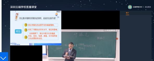 在云端課堂上,教學班以“上班節授課互動+下班節檢測復習”的模式,創新的將課堂一分為二,實現課堂教學效率的提升。主講教室老師的課堂畫面,在銳取錄播系統的高清記錄下,分毫畢現。老師主講、板書特寫、課件畫面在屏幕上一分為二,方便學生高效學習課堂知識,與此同時,課堂音視頻畫面也同步上傳至銳取云資源管理平臺。
