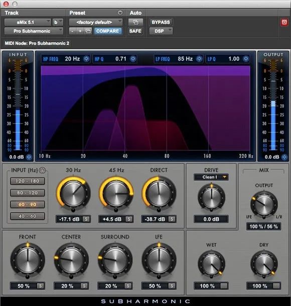 為多聲道格式(包括 5.1、6.1、7.1 和 7.1 SDDS)生成和控制單聲道、立體聲 (L/R) 或 LFE(低頻效果)聲道的次諧波信號