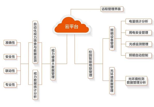 科學(xué)防控兒童青少年近視近視防控綜合管理云平臺集視力篩查數(shù)據(jù)管理、光環(huán)境數(shù)據(jù)管理、節(jié)能管理、設(shè)備自動化于一體。通過智慧物聯(lián)新技術(shù),可遠(yuǎn)程控制開關(guān),自動采集測量,實(shí)時監(jiān)控數(shù)據(jù),實(shí)現(xiàn)兒童青少年近視防控的智能化管理。
