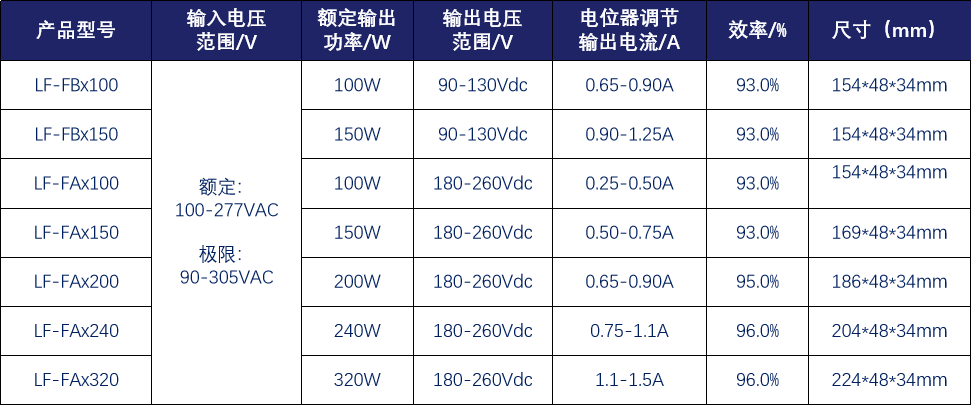 防雷等級:差模:4KV 共模:6KV(FBx版本100/150W )