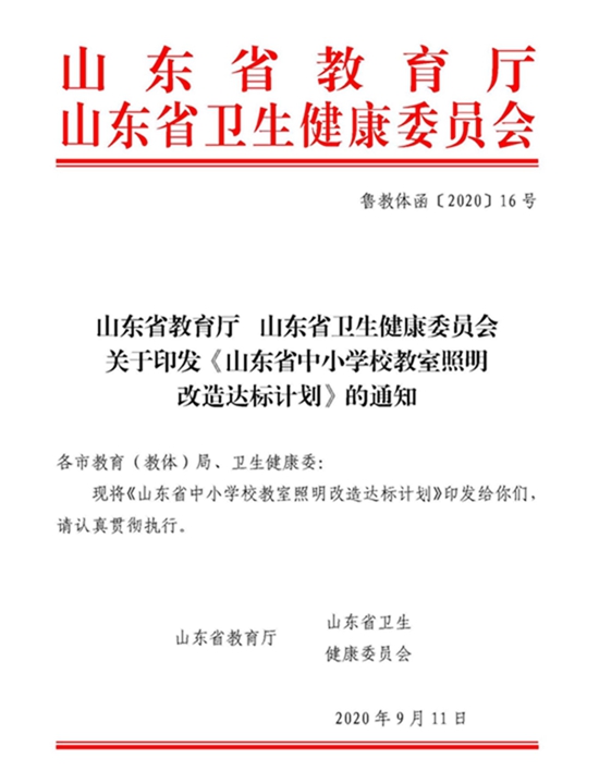 為有效遏制兒童青少年近視高發(fā)、低齡化趨勢,自2020年9月,山東省教育廳與山東省衛(wèi)生健康委員會就聯(lián)合印發(fā)了《山東省中小學(xué)校教室照明改造達(dá)標(biāo)計(jì)劃》,提出要確保2023年底前,全省學(xué)校教室照明100%符合國家標(biāo)準(zhǔn)要求,并全面完成教室照明達(dá)標(biāo)任務(wù)。