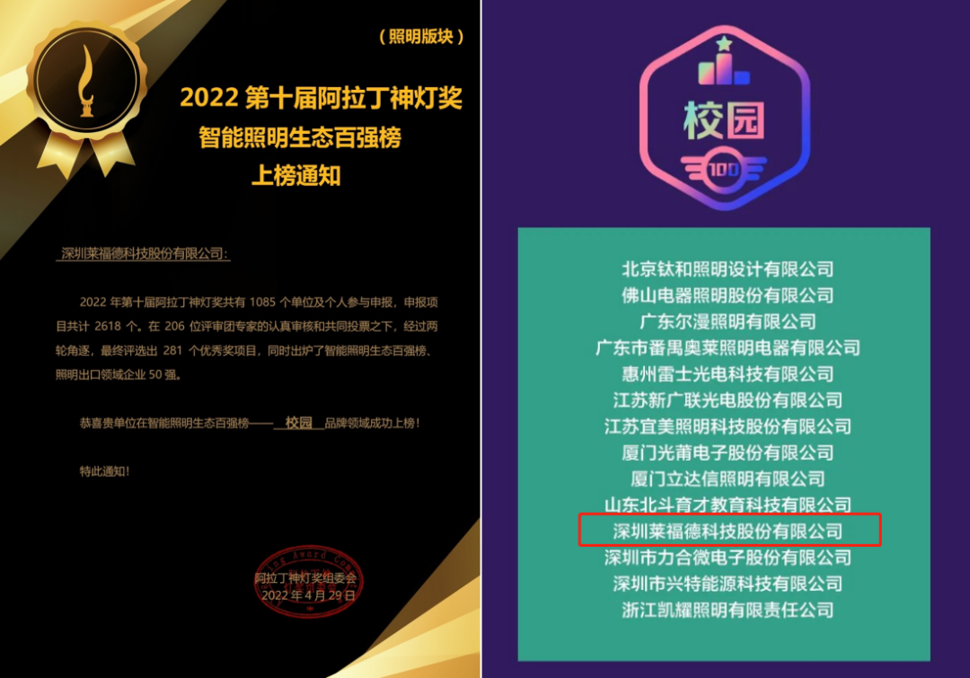 從常規教室到智慧教室照明,萊福德一直秉承針對細分領域應用痛點,研發專業細分產品的態度,推出數款教室照明專用電源,強力助攻客戶成功競標多項大型項目,讓萊福德深受校園照明領域客戶信賴,也讓萊福德在本次阿拉丁神燈獎評選中脫穎而出,成為校園品牌唯一上榜的電源企業。