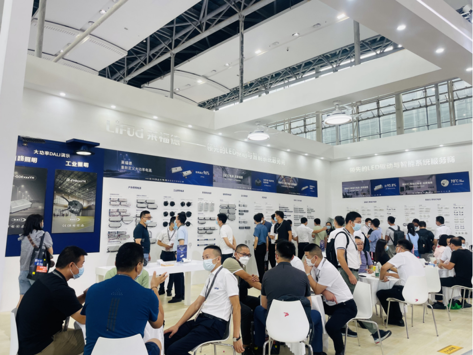 此次展會,萊福德靜態展示了筒射燈/導軌燈、面板燈/教室燈、條形燈/三防燈燈具應用以及戶外照明、工業照明、景觀亮化、植物照明、顯示屏場景的調光非調光電源解決方案。