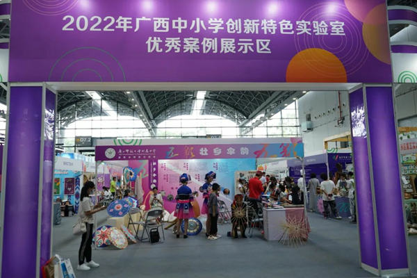 為展示廣西中小學創新、特色實驗室建設成果,搭建實驗室建設工作交流平臺,8月19日至21日,2022年廣西中小學創新、特色實驗室優秀案例展示活動在南寧國際會展中心舉行,“傘·藝”油紙傘——特色實驗室”、“《點米成畫》實驗室”、“坭興陶課程研究實驗室”、“銀花花·花花布——美術實踐實驗室”等12個優秀案例進行了現場展示。