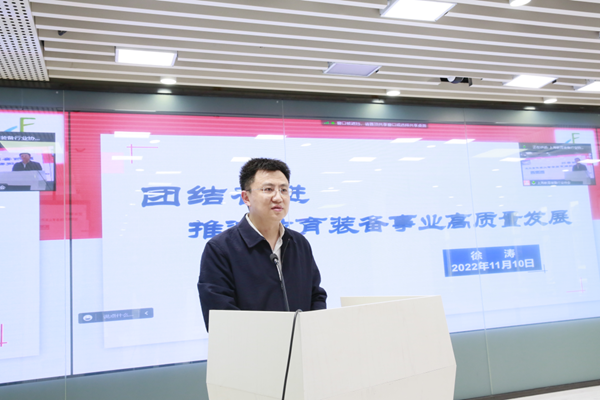 會上,徐濤主任作了題為《團結奮進 推進教育裝備事業高質量發展》的報告,解讀了黨的二十大報告中關于教育的論述,強調實施科教興國戰略的重大意義,分析“教育這十年”取得的成就。此外,他通報了裝備中心在基礎教育優質均衡發展、職業教育高質量發展、安全美麗學校建設、教育數字化轉型等方面開展的卓有成效的工作。面對行業各單位,他提出,要立足全局,放眼長遠,激發創新活力,加強企業主導的產學研深度融合,為上海教育提供更多選擇的優質資源。