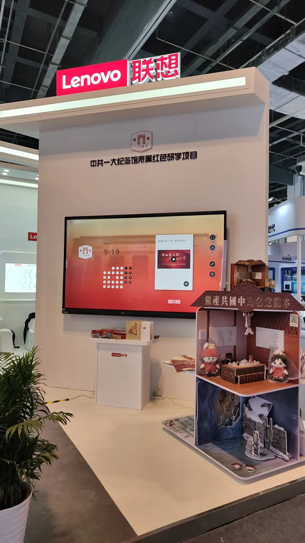 在展覽館T528展位,與聯(lián)想信創(chuàng)一體化解決方案、聯(lián)想高智慧教育整體解決方案一同精彩呈現(xiàn)的是中共一大紀(jì)念館所屬品牌“一大研學(xué)”的創(chuàng)新產(chǎn)品——“一大屏”。