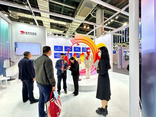 迪尚校園服展位自開館第一日起就人氣爆棚,現場人流絡繹不絕,不斷有觀展商進來參觀咨詢并對校服的品質和設計給予極高的贊譽。