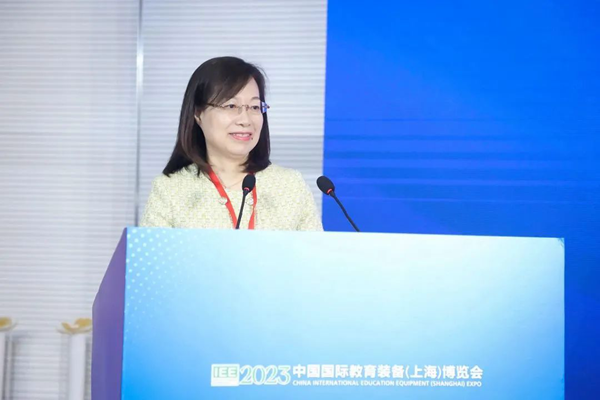 上海市教育委員會(huì)教育技術(shù)裝備中心黨總支書記兼副主任周齊佩向論壇致辭。