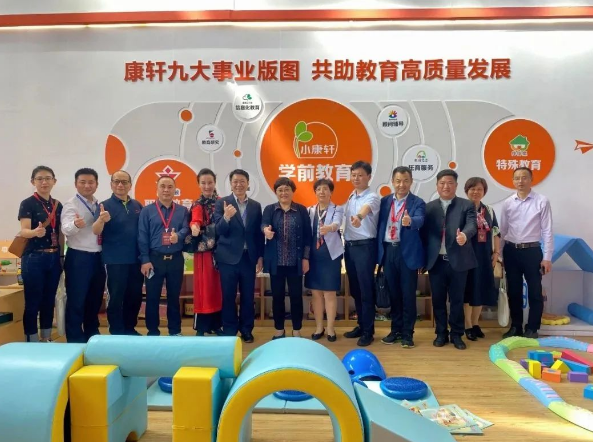 ▲中國教育裝備行業(yè)協(xié)會(huì)副會(huì)長兼幼教分會(huì)理事長劉焱教授一行到康軒展位參觀指導(dǎo)