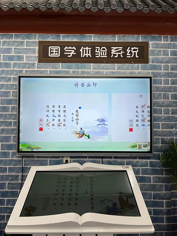 育靈童“國學智慧教室”是指通過技術(shù)搭建、資源整合和教研支持構(gòu)建起來的,旨在滿足全國各地學校開展優(yōu)秀傳統(tǒng)文化教育教學的綜合平臺。它以國學課程體系、國學教學系統(tǒng)、國學自主學習系統(tǒng)等資源為教學核心,利用多點觸控、云計算、增強現(xiàn)實、物聯(lián)和傳感技術(shù)等搭建智慧化的教學設(shè)備,通過環(huán)境氛圍和人文元素的布置打造具有濃郁傳統(tǒng)氛圍的教學環(huán)境,并通過與師資培訓平臺的連接支持教學研訓,從而激發(fā)師生的教學興趣,推動國學課堂教學生動、高效、有序開展。育靈童國學智慧教室以其系統(tǒng)的資源、高效的學習方式和趣味性的體驗設(shè)備榮獲中國教育裝備展示會金獎產(chǎn)品。同時,育靈童教育集團作為《數(shù)字化國學教室裝備規(guī)范》的團體標準制定單位而受到業(yè)內(nèi)的高度好評!
