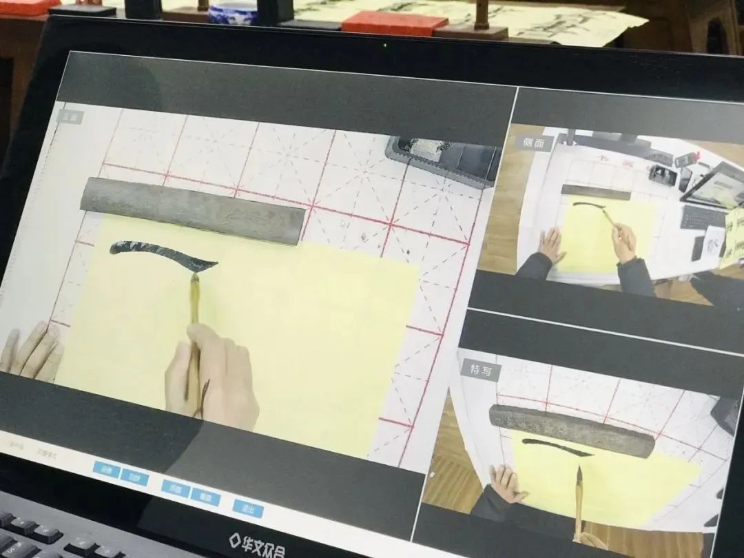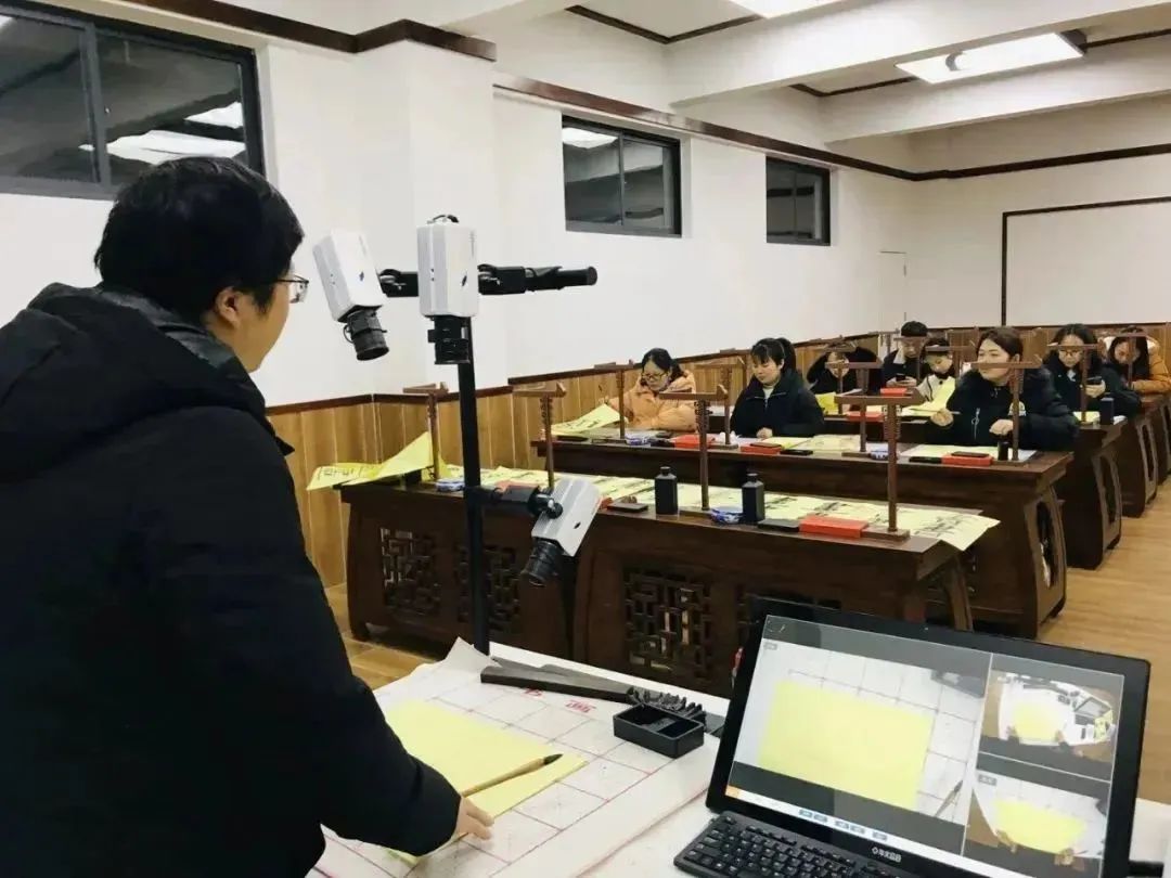 書法培訓在學校智慧書法教室開展,電子點簽、資源獲取、書法直播、板書示范和教學互動等科技與傳統相結合的智慧書法新模式讓老師們紛紛感嘆。