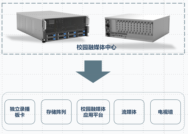 “校園融媒體資源中心”系統采用X86主控板、ARM板卡和磁盤陣列組成架構,具有強大的音視頻編解碼性能,海量的存儲空間,靈活的擴展設計,安全的備份冗余機制