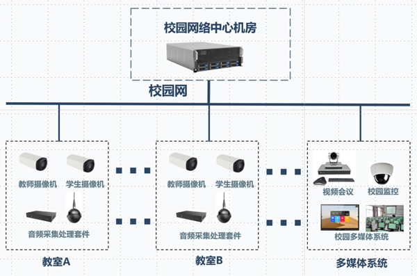 “校園融媒體資源中心”是江蘇三步科技股份有限公司自主設計研發的一套校園級綜合多媒體應用場景解決方案。方案通過一個融媒體中心,內置集控管理、校園融媒體應用平臺,以及教室端音視頻采集系統,為學校提供多種類型、各種模式的音視頻應用場景,形成校園融媒體綜合應用;該方案定位于高教、職教以及普教市場,以班級錄播全覆蓋為基礎,同時融合對接校園各類多媒體應用。