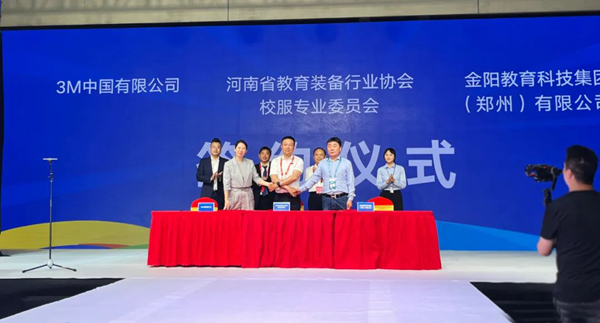 5月12日,在鄭州國際會展中心舉辦的2023河南省教育裝備博覽會上,金陽教育科技集團、河南省教育裝備協(xié)會校服專委會分別與3M中國、YKK拉鏈順利進行“豫傳承 育未來-全天候三方合作協(xié)議”簽約儀式。河南省教育資源保障中心主任王德如、黨委書記王磊、副主任孫艷紅、河南省教育裝備協(xié)會會長林忠培、秘書長武強、3M消費品事業(yè)部服飾及紡織材料部亞太區(qū)總經(jīng)理劉麗娜、上海吉田拉鏈有限公司中西部負責人徐皓、金陽教育科技有限公司董事長陳濤,以及來自各地市裝備中心的領導及專家們出席了此次簽約儀式。
