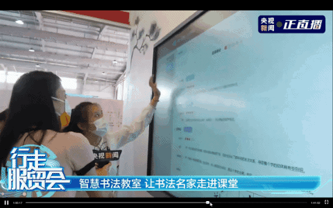 2022服貿(mào)會上,央視新聞記者向觀眾直播華文眾合第8代智慧書法教室Ai評價功能
