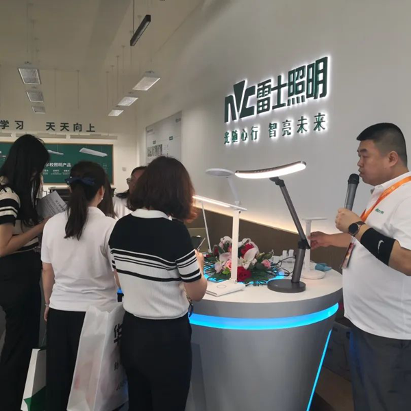 工作人員熱情接待參展者,詳細地向參展客戶講解智慧照明校園創新應用解決方案,帶領客戶了解雷士照明的產品與服務。