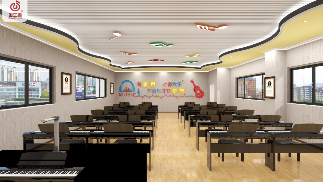 數字音樂國標教室 推薦指數:⭐⭐⭐⭐⭐ 推薦理由: √符合國家教育部音樂教室配置標準,助力建設信息化音樂課堂; √配備了智慧電鋼琴及多種學生樂器,適用于小、中、高階段學生聲樂、樂器教學和音樂興趣小組的開展; √可以幫助教師進行多元化教學,解決教室、樂器資源不足問題。