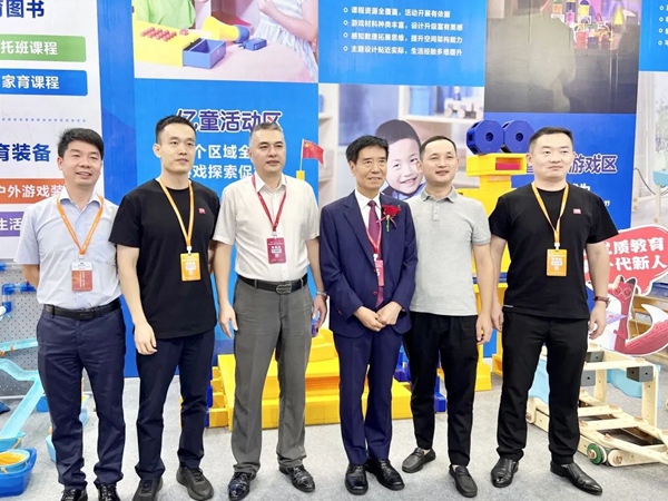 ▲ 教育部關(guān)心下一代工作委員會(huì)常務(wù)副主任、中國(guó)教育裝備行業(yè)協(xié)會(huì)專家委員會(huì)主任王富(右三)一行到億童展位參觀指導(dǎo)