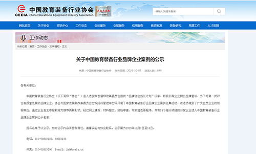 中國教育裝備行業協會積極引導企業樹立品牌意識,為了培育一符合高質量發展的品牌企業,與國家發展和改革委員會宏觀經濟管理中宏網開展了中國教育裝備行業品牌企業案例征集活動。