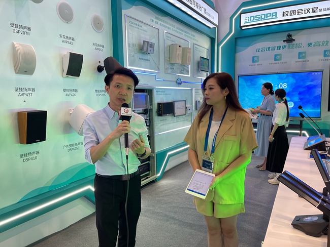 展會現(xiàn)場,廣州市迪士普音響科技有限公司總經(jīng)理馬鈺杰接受本站采訪。