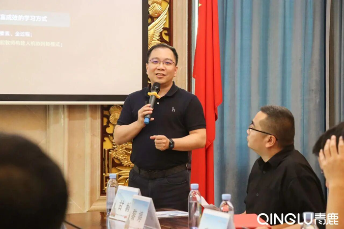 青鹿研究院院長廖力以“數智時代教育教學環境的建構實踐”為題作專題分享。廖院長結合國內名校的先進實踐案例,深入剖析了未來課堂中“人機協同”的教學新模式。為三鑫學校的項目推進提供了寶貴的理論指導和實踐參考。