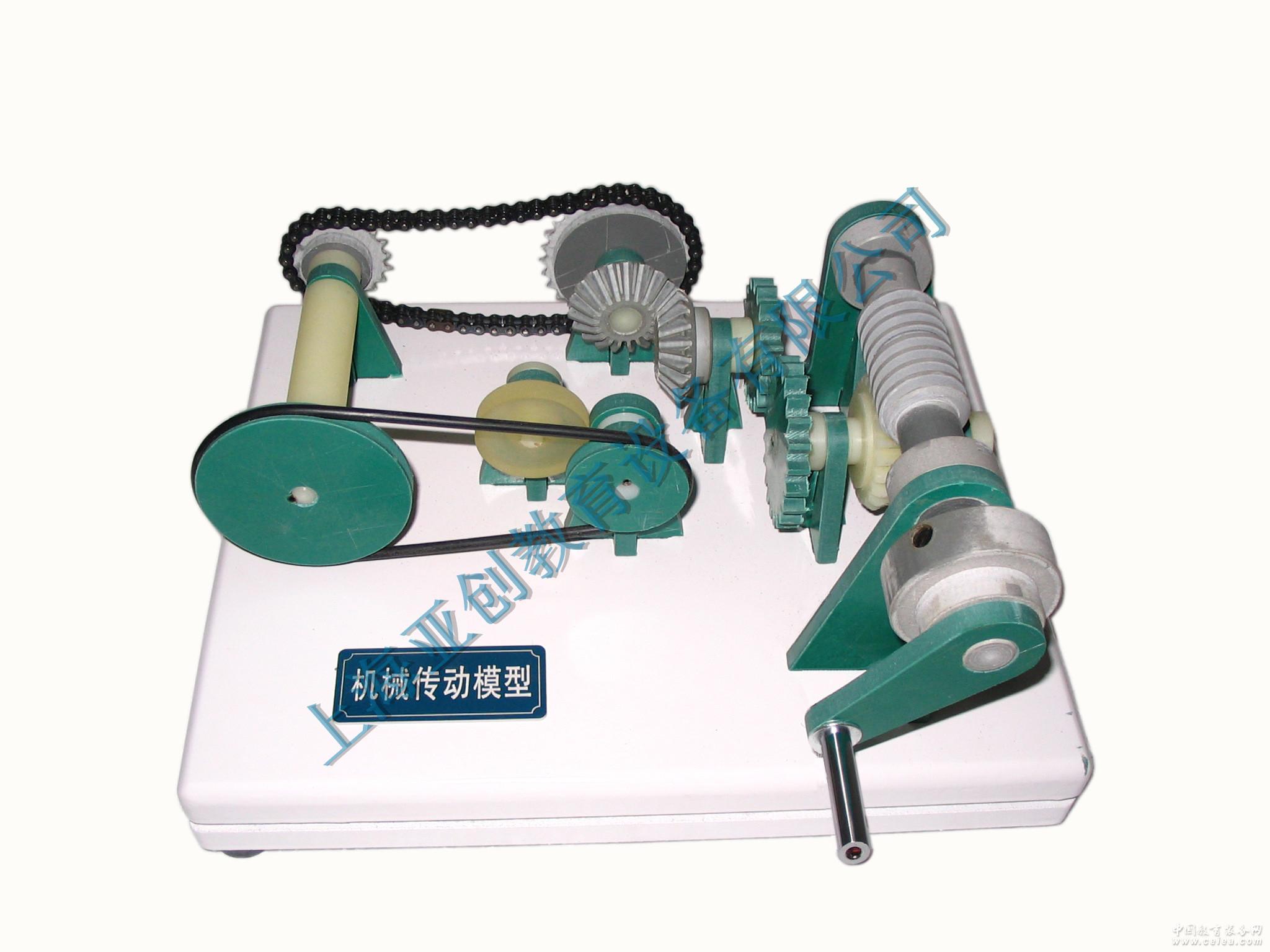 產品詳細介紹在機械傳動模型中,演示了從渦輪渦桿傳動→直齒圓柱齒輪傳動→直齒錐齒輪傳動→鏈條傳動→皮帶傳動→摩擦傳動的整個過程和原理。