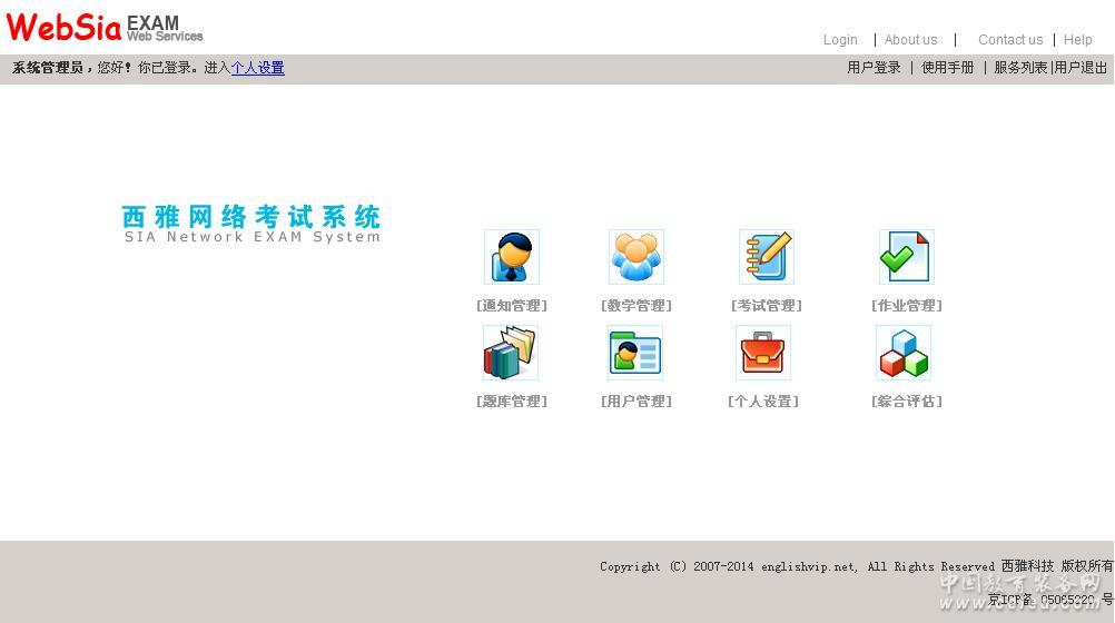 產品詳細介紹SiaExam網絡考試系統是套完全基于.net平臺開發的新一代系統平臺,系統采用XML完全數據結構模式開發的純B/S網絡考試系統。系統整體性能較傳統的網絡考試系統(即 C/S和B/S的混合模式)有極大的提高,比如在數據并發量、穩定性、數據遷移等指標等。同時結合多年用戶的實踐,遵循國家級考試要求及考試流程,整合大量用戶的實際應用需求而推出全新的適合國內大中院校各類英語考試的最新一代智能網絡考試系統。