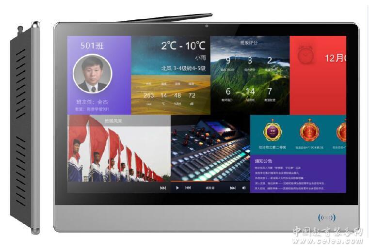 校園文化是一個不斷建設、反思、提高的系統工程,是學校可持續發展的源動力,是學校綜合辦學水平的重要體現,也是學校個性魅力與辦學特色的體現,更是學校培養適應時代要求的高素質人才的內在需要。許多傳統的班牌上,不再是簡單的數字,有的加了班級的班徽,有的加了班級的照片,有的加了班級的榮譽等等。總之,班牌的內容越來越豐富多彩,大家都希望班級的特點盡可能濃縮在這小小班牌之上。[1]班牌與信息技術的應用融合也應運而生,電子班牌是德育信息化的重要載體與抓手,其在班級文化建設、校園文化引領等方面的應用,可有效促進人文性智慧校園的形成。 電子班牌即數字化形式的班牌,是一種應用于教育教學的電子顯示設備,可以是數碼相框,也可以是平板電腦等。電子班牌的存儲與交換介質采用USB接口、網絡接口或存儲卡模式等,通過音視頻、網絡、電視信號等格式進行內容的呈現,可以實現與班級文化建設相關的班徽、音樂、視頻、照片幻燈式播放、時鐘顯示、通知公告、班級考核等。 |