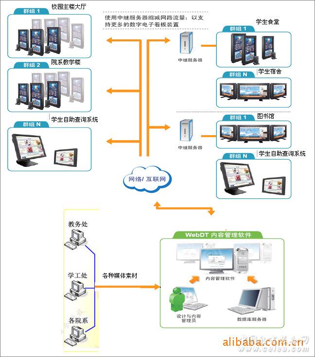 產品詳細介紹中電盈科校園信息發布系統就是基于公司自身的聯網信息發布系統,通過嵌入教學系統軟件進行及時的信息發布,該款系統的 特色是:所見即所得(WYSIWYG)的可視化節目編輯,屏幕區域自由分割組合。預置多種精彩模板(Template),讓用戶輕松制作高品質的節目。模板突出行業和業務特點,如品牌宣傳、業務介紹、業務推薦、促銷活動、安全提示、新聞動態、內部培訓等。強大的素材庫。管理動態和靜態素材,預留對3D電影等3D素材的支持。節目可以直接導入PPT、Word、Excel等格式的文件,節省節目制作時間和精力。系統支持原生網頁無失真。系統架構先進,生成的節目文件小,節省傳輸帶寬占用。