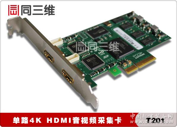 產(chǎn)品詳細(xì)介紹 HDMI采集卡T201 是北京同舟視達(dá)科技有限公司推出的最新的 4K HDMI采集卡,可采集 1 路 4Kx2KHDMI 超高清視頻信號(hào)(4096×2160@30fps或3840×2160@30fps)。同三維T201高清4KHDMI采集卡采用高速 PCI-Express×4 接口,達(dá)到 600-800MB/s 傳輸帶寬,并采用高速大容量圖像緩存技術(shù),輕松達(dá)到更高的傳輸速率和質(zhì)量;色彩空間轉(zhuǎn)換、畫面反轉(zhuǎn)、縮放和去隔行等圖像處理在 FPGA 內(nèi)完成,極大地減少了 CPU 的負(fù)擔(dān),高效率 DMA 傳輸方式進(jìn)一步解放了 CPU 的能力,從而讓 CPU 專注于用戶指定的工作。