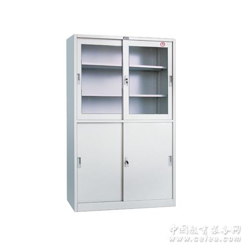 0.8厚優質一級冷軋鋼板,表面靜電噴塑處理。上部設二塊可調擱板。擱板長邊三折彎處理,中間設加強筋板。門外設標簽框。優質名牌鎖具。