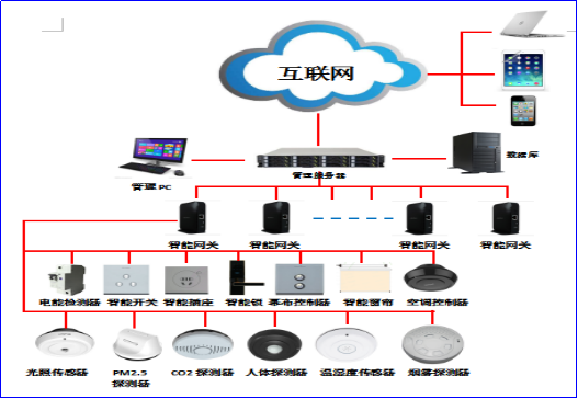 遠程管理: 手機、電腦遠程監(jiān)看設(shè)備狀態(tài),遠程單獨控制設(shè)備、遠程批量管理設(shè)備 定時管理: 根據(jù)定時管理策略,實現(xiàn)設(shè)備的定時管理和時序管理 場景化管理: 根據(jù)場景化管理策略,實現(xiàn)設(shè)備的場景管理,如“上課模式” 聯(lián)動控制: 根據(jù)聯(lián)動管理策略,實現(xiàn)設(shè)備的智能化管理,如恒溫環(huán)境、恒亮度環(huán)境 區(qū)域管理: 根據(jù)區(qū)域管理策略,實現(xiàn)設(shè)備的區(qū)域管理,如宿舍樓統(tǒng)一關(guān)燈 APP管理 : 可定制APP,實現(xiàn)移動端管理