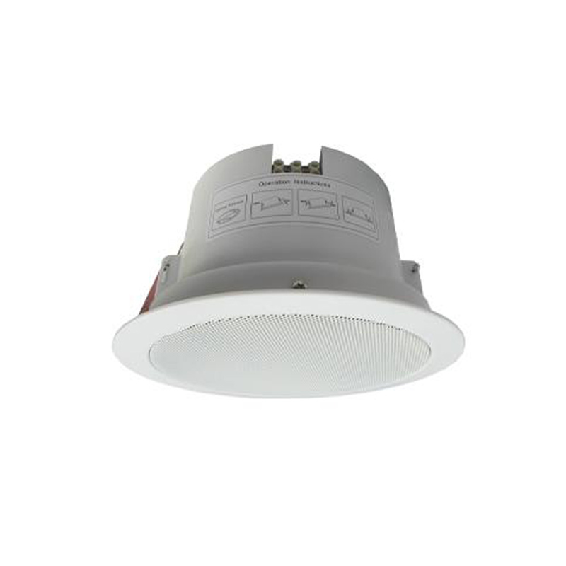 產品詳細介紹校園IP網絡廣播有源天花式揚聲器 6W 產品用途: ◆天花式一體化網絡音頻解碼音箱,用于廣播分區音頻解碼、聲音還原作用 ◆安裝在只需單向點播的房間、辦公室、客房等室內區域 產品特點: ◆專業天花式設計,塑料外殼,鋁質網面材料結構,內置網絡解碼模塊,立體聲功率放大、高保真揚聲器 ◆設有1個標準10/100M RJ45網絡交換接口,支持局域網、廣域網接入 ◆實現加密傳輸,接受器支持自動掃頻功能,輕松避開干擾 ◆單向點播功能,通過服務器軟件手動或定時自動播放節目 ◆音箱自帶功率放大,10W/8Ω立體聲定阻輸出 ◆終端輸出音質達到CD級 ◆采用高速工業級芯片,嵌入式計算機技術及DSP音頻處理技術,啟動時間小于1秒 ◆數字化成品,擴容方便,不受地理位置限制,無需增加機房管理設備,采用共網免線路施工的設計理念,安裝方便 規格參數: ◆型號:PF 29186 ◆網絡接口:RJ45 ◆傳輸速率:10/100Mbps ◆支持協議:UDP、RTP、TCP、組播、SIP協 ◆音頻格:MP3、WMA、WAV ◆音頻模式:16位立體聲CD音質 ◆采樣頻率:8K-48KHz ◆輸出功率:10W ◆頻率響應:20HZ-20KHZ ◆靈敏度(1m,1W):88dB ◆諧波失真:≤0.1% ◆信噪比:≥65dB ◆喇叭單元:6’x1 ◆電源輸入:190~240V 50-60HZ ◆工作溫度:-10℃-60℃ ◆工作濕度:20%-80%相對濕度,無結露 ◆尺寸:200mmx100mm ◆重量:1.00Kg ◆材料:鐵質外殼 |