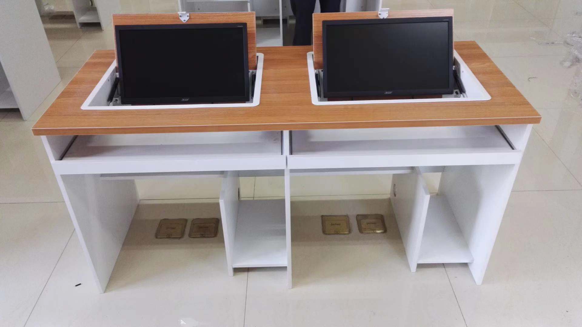 產品詳細介紹材質:桌面采用25mm厚的實木顆粒板,桌體采用16mm厚板材,甲醛釋放量符合國家E1級環保標準,顏色可定制。 翻轉器材質:整體為冷軋鋼板,鋼板厚度為1.2毫米,采用全自動數控激光切割裁板, 二氧化碳保護焊工藝制作,表面經酸洗、磷化防腐防銹處理后靜電噴涂。 選用氣壓桿支撐,優質五金鎖具,獨立結構。 1、可隱藏液晶顯示器,實現一室兩用。 2、使用時只需要輕輕拉開拉手(鎖具),翻轉器就會自動打開,不用時按下翻板即可關閉。  3、動力采用可變速氣動桿(可實現打開翻轉器后,翻轉的時候會自動減速停止,避免顯示器在翻轉的過程中因速度太快損壞顯示器)。  4、設備尺寸:19、22、24可根據顯示器尺寸定制。 |