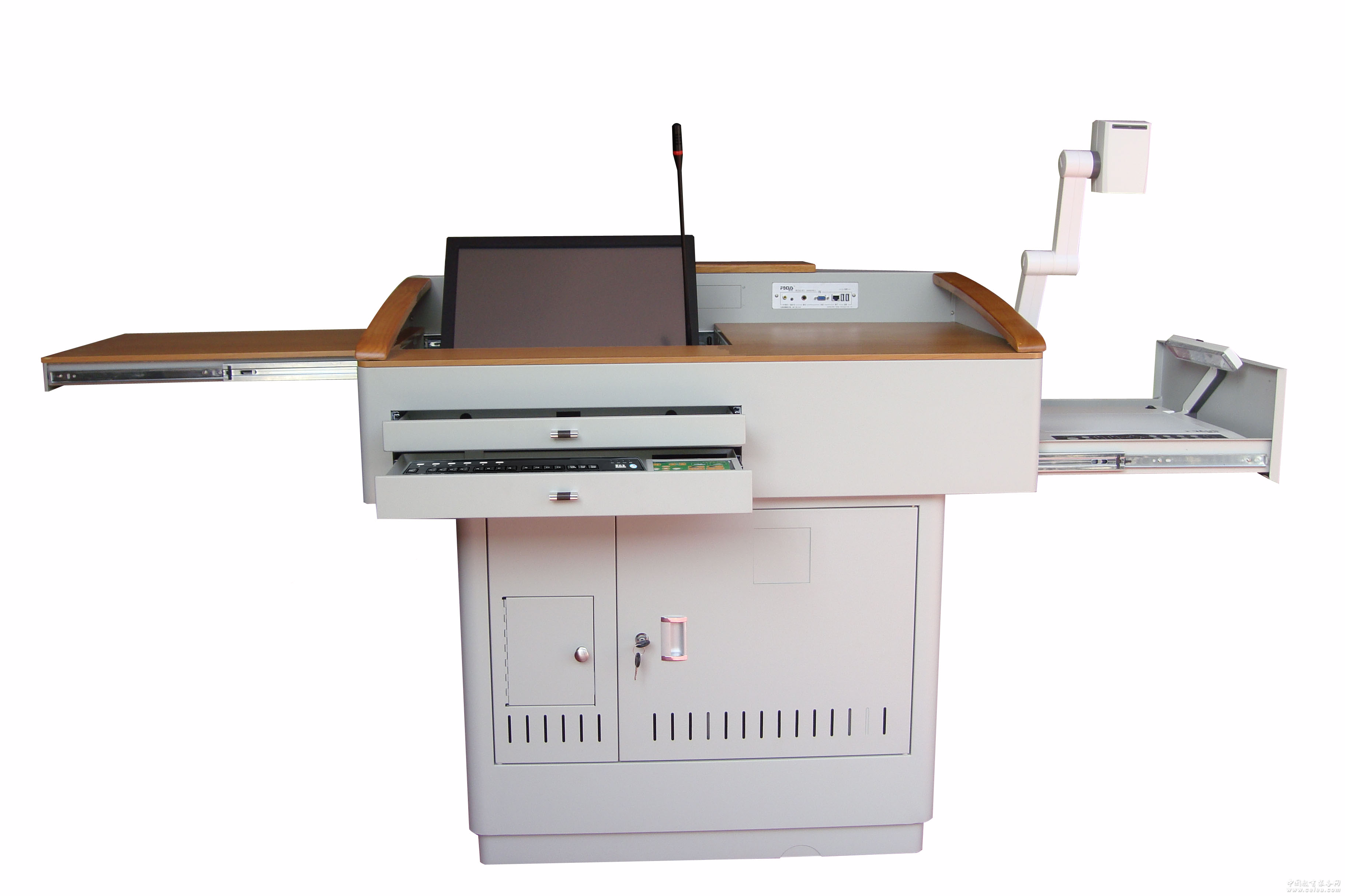 產(chǎn)品詳細(xì)介紹參數(shù): 1、知識(shí)產(chǎn)權(quán):數(shù)位講桌擁有自主知識(shí)產(chǎn)品,獲得外觀設(shè)計(jì)專利認(rèn)證,專利號(hào):ZL 2008 3 0039389.6 2、講桌設(shè)計(jì):采用分體式設(shè)計(jì),桌面部分和桌體部分自成一體,外置固定螺絲孔位,安裝簡(jiǎn)單,方便進(jìn)出設(shè)計(jì)比較窄的教室門(mén)。獨(dú)立包裝,運(yùn)輸輕便。 2、講桌構(gòu)成:鋼木結(jié)合,桌面為防火板,防火、防塵、防水、耐刮花。LOGO裝飾板及扶手為海南橡木,高檔美觀,實(shí)用。 3、講桌材料:講桌主體采用1.5mm冷軋鋼板,其它部分采用1.2mm冷軋鋼板。 4、講桌尺寸:關(guān)閉時(shí),長(zhǎng)寬高(110*80*100)CM;展開(kāi)時(shí),長(zhǎng)寬高(200*105*100 )CM。 5、人性化:無(wú)棱角,桌體拐角采用圓弧設(shè)計(jì),防止碰傷。提供實(shí)木扶手,方便老師扶握。 6、高度集成:講桌內(nèi)部可擴(kuò)充IC卡系統(tǒng),可內(nèi)置專業(yè)鵝頸話筒一只,兩只30W的多媒體無(wú)源音箱,可擴(kuò)充防盜報(bào)警系統(tǒng),可擴(kuò)充四只輪子,方便移動(dòng)。 7、詳細(xì)配置: (1)、講桌配氣動(dòng)輔助升降桿或者電動(dòng)升降機(jī),可裝15寸、17寸、19寸、21.5寸液晶顯示器。 (2)、講桌配隱藏式滑軌抽拉抽屜,可容納鍵盤(pán)、中控控制面板。鍵盤(pán)架下方為儲(chǔ)物抽屜,可以放置書(shū)本,粉筆,粉擦等。 (3)、講桌桌體采用開(kāi)合式小柜門(mén)設(shè)計(jì),不必打開(kāi)桌子柜門(mén),即可經(jīng)由計(jì)算機(jī)光驅(qū)播放光碟。 (4)、講桌左側(cè)具推拉式輔助臺(tái)板,可放置筆記型計(jì)算機(jī),承重8公斤。 (5)、講桌右側(cè)具有抽拉式抽屜,可放置實(shí)物展示臺(tái),承重10公斤。 (6)、講桌桌子內(nèi)部采用機(jī)柜式標(biāo)準(zhǔn)設(shè)計(jì),帶隔板,中控及功放等設(shè)備可以固定安裝起來(lái),其他設(shè)備可放在隔板上面,所有設(shè)備擺放整齊、美觀。 8、高檔紙箱包裝,抗摔,防壓。 |
