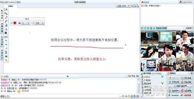 電子白板標注: 在開會過程中,通過電子白板畫圖功能,可以對當前共享的文檔進行在線標注,增加記憶和培訓效果,通過限制只有發(fā)言人以及主講才能畫圖避免會場的混亂