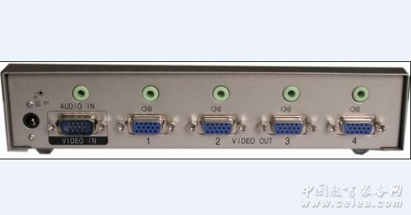 產品詳細介紹VGA音視頻分配器、VGA分配器、VGA視頻分配器、VGA信號放大器――Kylines VGA104A 為了解決1路VGA信號分配成多路VGA信號的需求,北京麒麟視訊科技有限公司研發生產了Kylines VGA104A,它把1路(VGA+音頻)信號分配成4路(VGA+音頻)信號的高清設備,即插即用,安裝簡單,廣泛地應用到大屏幕顯示系統、證券市場、計算機展示會場、影視、視訊傳播公司、教育訓練中心、多媒體信息發布系統等項目中。 【VGA音頻分配器產品介紹】 ★Kylines VGA104A高保真VGA、立體聲媒體分配傳輸器 內部集成1-4VGA分配器、1 -4立體聲音頻分配器、4路(增益6dB)VGA傳輸器,該產品是專門針對當今流行的網絡版媒體廣告和高清VGA信息發布等應用推出的首款低成本的傳輸設備。 ★Kylines VGA104A 的 R、L立體聲音頻信號輸入采用高達225V/us壓擺率(極品瞬態層次響應)、信噪比僅為1.9nV/root Hz、24bit/40Mbps及125MHz帶寬的發燒級立體音頻驅動、分配為四路立體聲音頻信號輸出(適用于24bit-CD、MP3音質)。 ★Kylines VGA104A 采用外接+9V至+12V供電,并且獨家具有 無輸入休眠省電智能模式等功能。 ★Kylines VGA104A非常適用于工業控制、醫療、多媒體教學、KVM、液晶廣告工程、大屏幕顯示幕墻、視頻監控等各類需要VGA、音頻信號中短距離傳輸的應用。